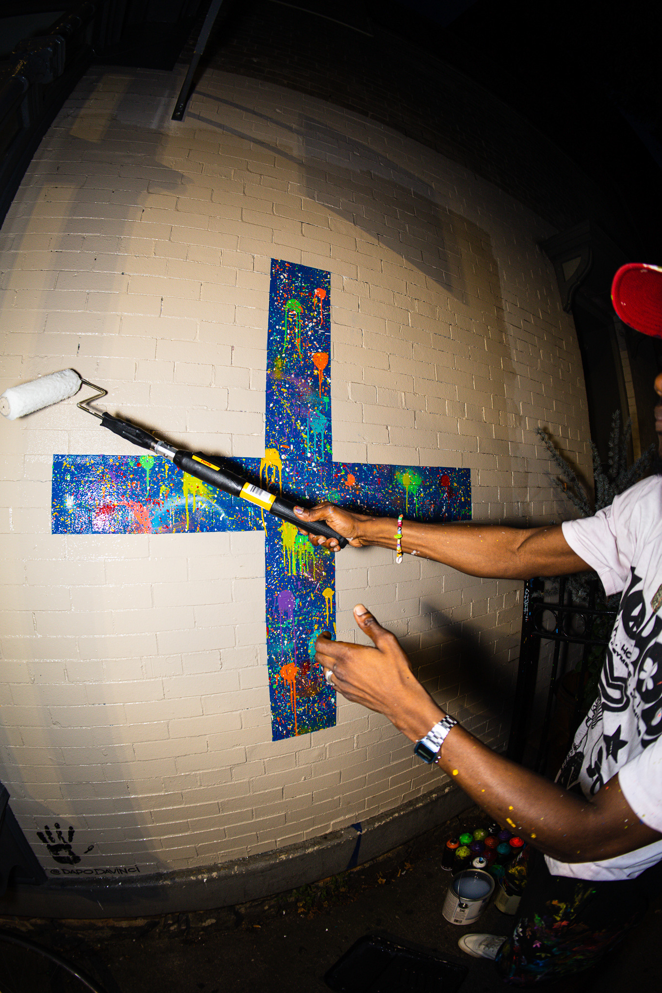 Malin Goetz kicks off their first artist series at their Williamsburg store with fine artist Dapo Davinci. Photographed behind the scenes of the mural and event where the artist presented a mural and customized M+G candles.
